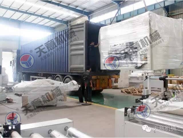 為加快臺灣綠色建筑建材市場快速發(fā)展,9月20日,天意機(jī)械為臺灣客戶定制的一套保溫裝飾一體化板生產(chǎn)線成功裝車發(fā)往臺灣。