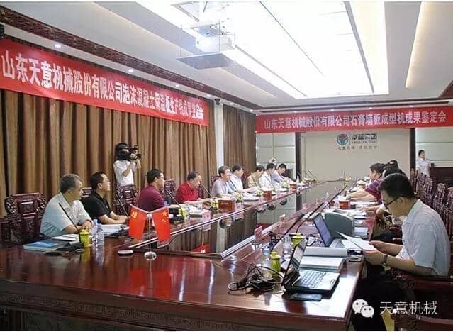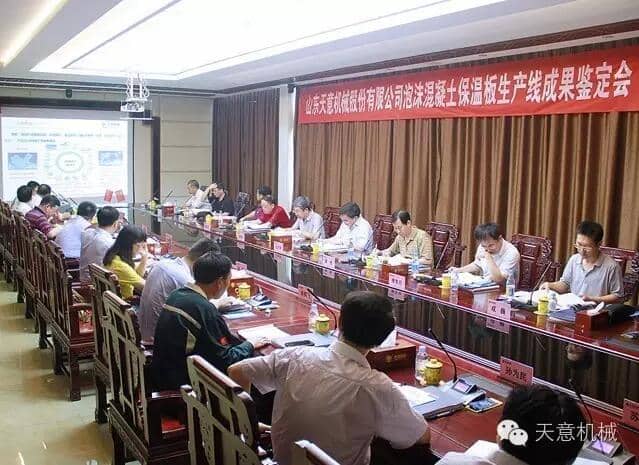 為加快產(chǎn)業(yè)結(jié)構(gòu)轉(zhuǎn)型升級(jí),突出科技創(chuàng)新驅(qū)動(dòng)企業(yè)發(fā)展,7月23日,由山東省機(jī)械工業(yè)協(xié)會(huì)處長(zhǎng)李玉奎帶隊(duì)一行領(lǐng)導(dǎo)專家,蒞臨天意機(jī)械組織召開 "泡沫混凝土保溫板生產(chǎn)線” 和 “石膏墻板成型機(jī)” 科技成果鑒定會(huì)。濟(jì)寧市兗州區(qū)副區(qū)長(zhǎng)周詠輝,集團(tuán)董事長(zhǎng)劉洪彬、技術(shù)總監(jiān)陳維國(guó)等領(lǐng)導(dǎo)出席了本次會(huì)議。