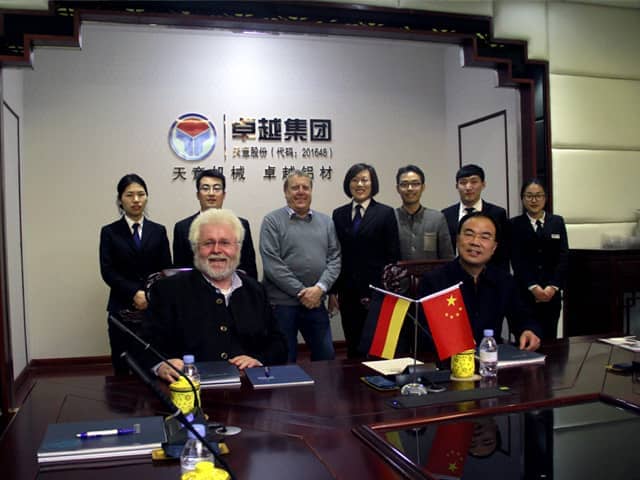 3月15日,德國外賓Dipl.lng. Bernhard Heid和Wolfang Foerster到天意機(jī)械參觀洽談合作,天意機(jī)械董事長劉洪彬,外貿(mào)部負(fù)責(zé)人董偉、李芳芳等進(jìn)行了熱情接待。