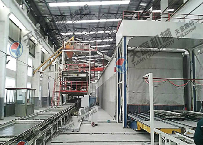 • 多功能墻板生產(chǎn)線,可生產(chǎn)“三明治”夾芯板,鋼邊框屋面板、樓面板,不帶面板復(fù)合板。生產(chǎn)線主要分為自動(dòng)配料系統(tǒng)、攪拌系統(tǒng)、發(fā)泡系統(tǒng)、中央控制配電系統(tǒng)、輕質(zhì)混凝土布料系統(tǒng)、磨光系統(tǒng)、模具循環(huán)系統(tǒng)、養(yǎng)護(hù)系統(tǒng)、碼垛系統(tǒng)等部分組成。